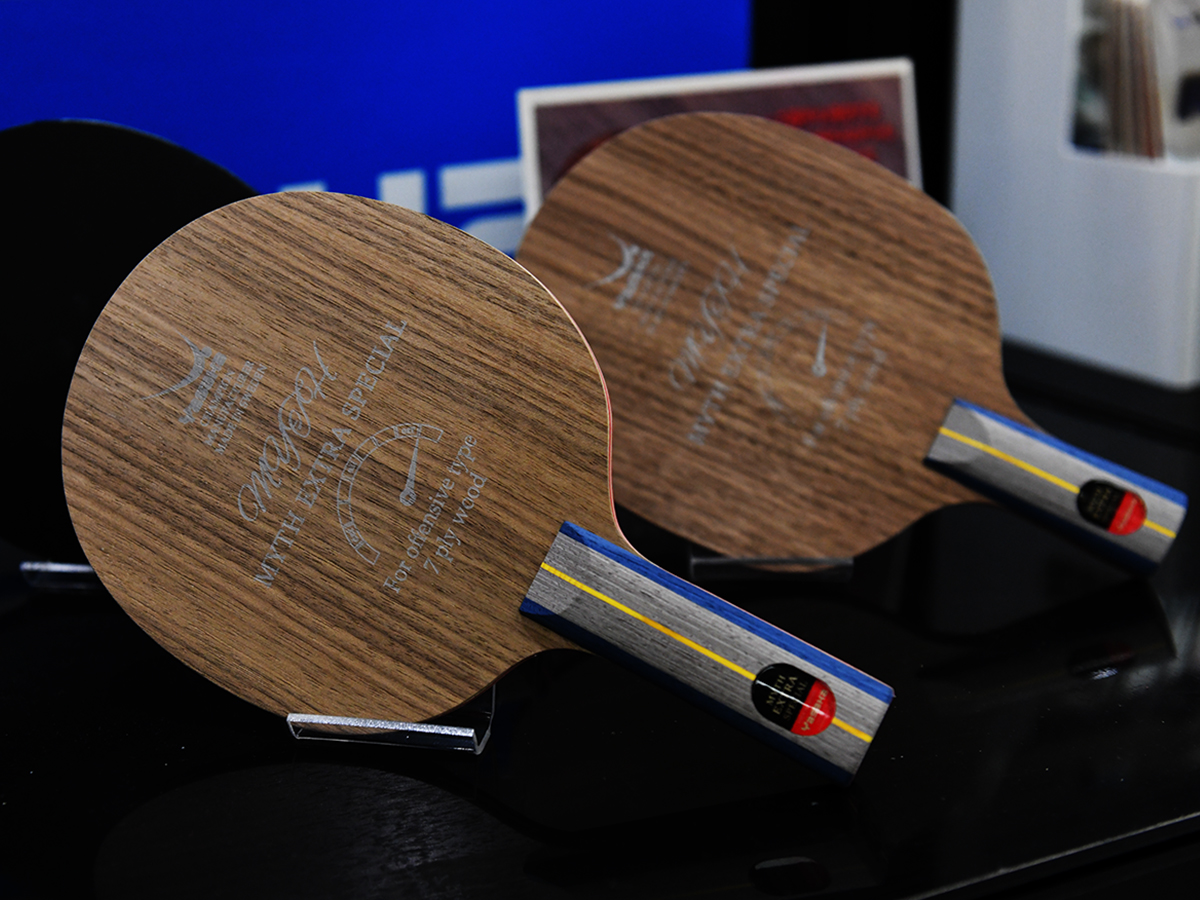 5枚合板の『マイスエキストラオフェンシブ』と同様、上板には硬質なウォルナット材を使用し、7枚合板にすることで反発力を高めた『エキストラスペシャル』。そのブレードの特徴は、「掴(つか)んで弾く」という絶妙な球離れのバランス。威力とコントロールを高い次元で両立させ、トップ選手からも支持を集めてきた。